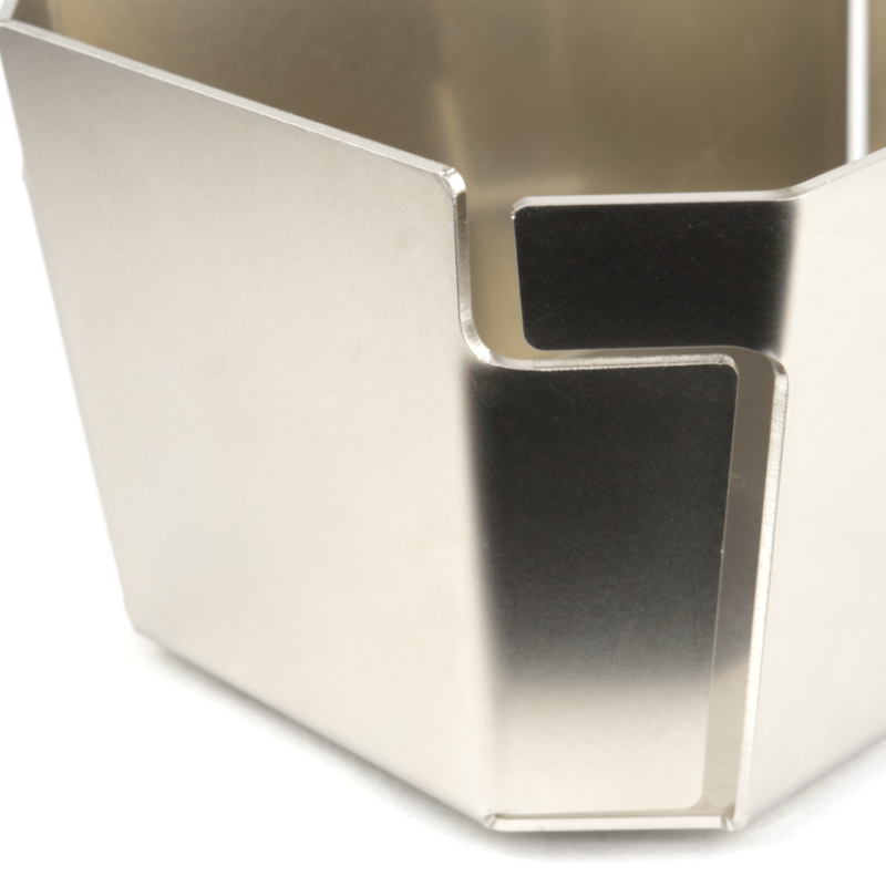 Die Erdbeerschalen sind aus Edelstahl gefertigt, das macht sie nicht nur robust sondern auch rostfrei. Der Oberfläche haben wir einen ungerichteten Schliff verpasst, dadurch ist sie viel unempfindlicher als eine gebürstete Oberfläche, auf der man Kratzer schnell sieht.