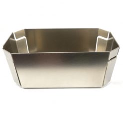 Unsere Erdbeerschale ist der klassischen Pappverpackung nachempfunden, in denen Beeren und Früchte aller Art verkauft werden. Sie fasst 1kg Früchte. Aus Edelstahl wird sie sie zum Hingucker auf dem Esstisch!