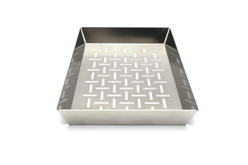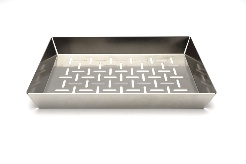 Sie ist aus stabilem Edelstahlblech (1,5 mm Blechstärke) gefertigt, das macht sie nicht nur robust sondern auch rostfrei. Die Schale kann ohne weiteres in die Spülmaschine und sie hält natürlich auch der Hitze des Grills stand. Damit die Reinigung leichter von der Hand geht pinselt man sie am besten vor der Benutzung mit etwas hitzebeständigem Öl ein.