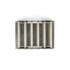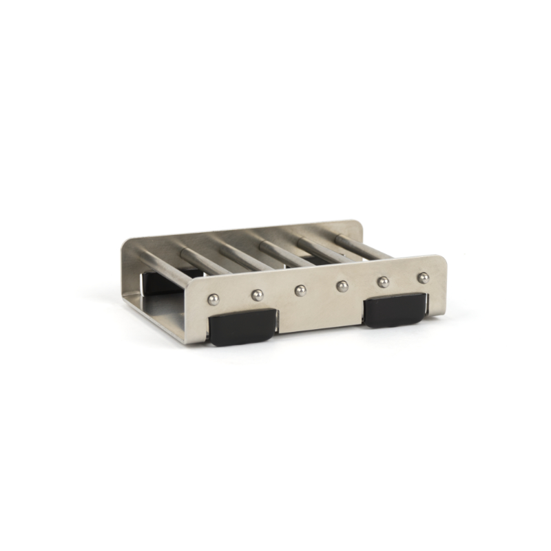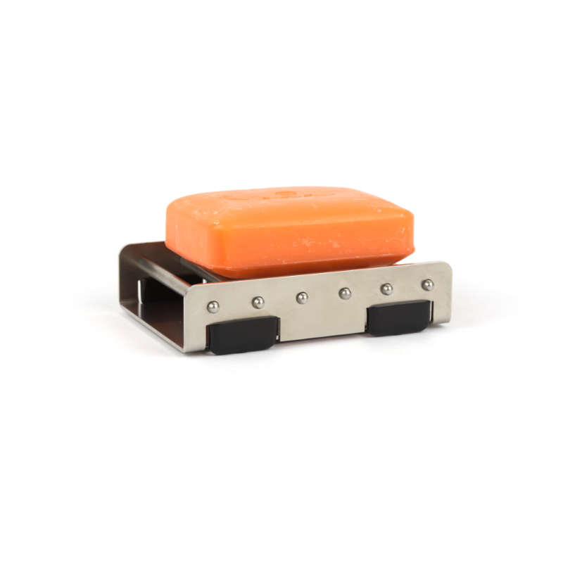 SEPP № 2 ist eine Seifenschale aus geschliffenem Edelstahl. Die Seife liegt auf zylindrischen Stäben auf, wodurch die Seife schnell trocknet – wichtig, weil aufgeweichte Seifen kann doch wirklich niemand brauchen!