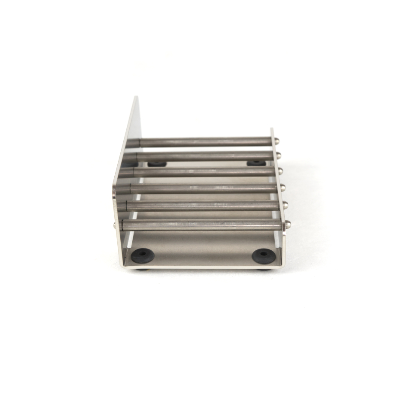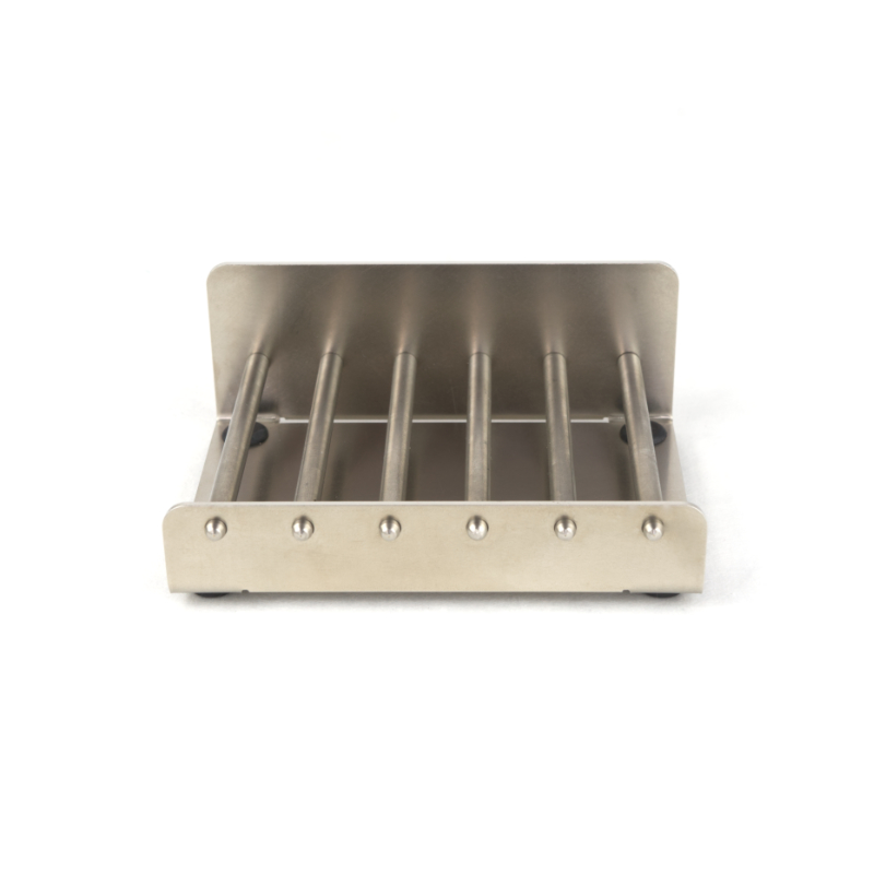 SEPP № 3 ist eine Seifenschale aus geschliffenem Edelstahl. Die Seife liegt auf zylindrischen Stäben auf, wodurch die Seife schnell trocknet – wichtig, weil aufgeweichte Seifen kann doch wirklich niemand brauchen!