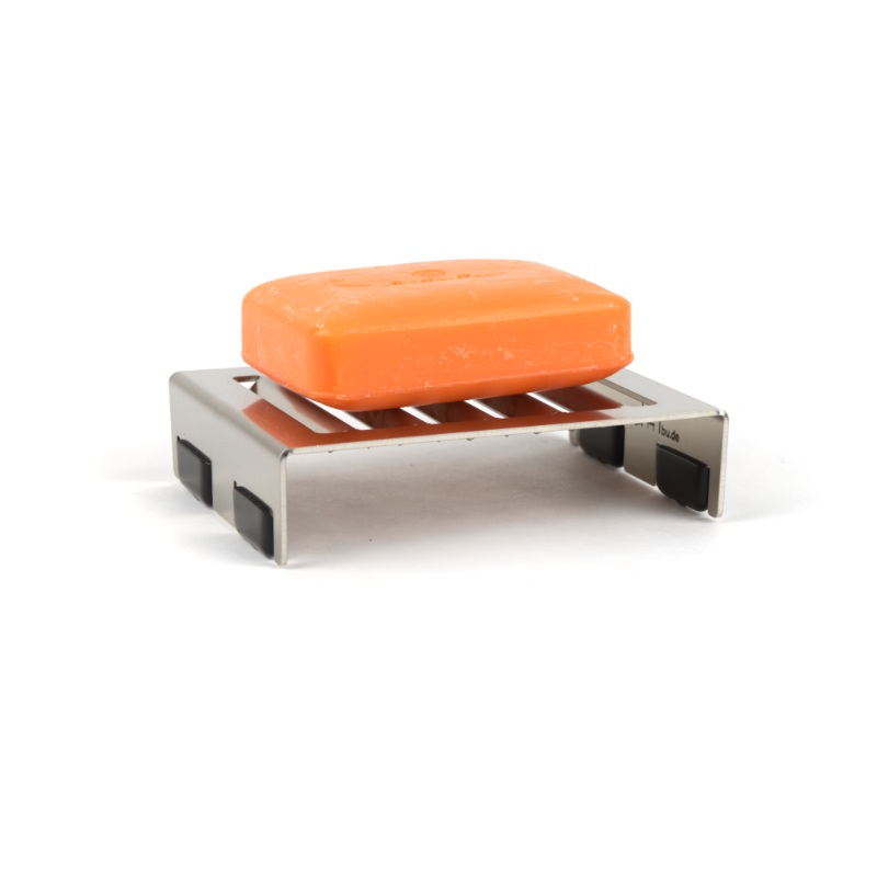 Unsere Seifenschalen sind aus Edelstahl gefertigt, das macht sie nicht nur robust sondern auch rostfrei. Der Oberfläche habe wir einen ungerichteten Schliff verpasst, dadurch ist sie viel unempfindlicher als eine gebürstete Oberfläche, auf der man Kratzer schnell sieht.